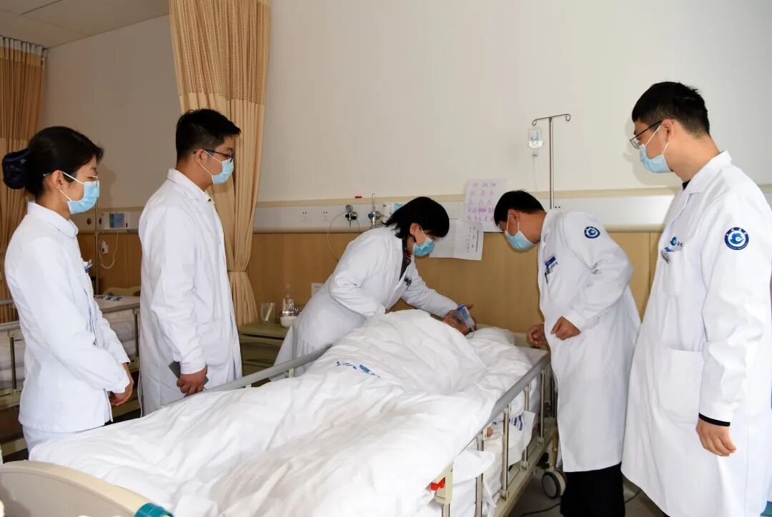 入住后,病人各项检查结果出来了,陈忠红主任根据病情对症用药,同时,邀请骨科陈武主任、消化科许维龙主任、呼吸科李秀主任、康复科吴建贤主任等参加了会诊,商讨该患者帕金森肌张力紧张、股骨粗隆间骨折、坠积性肺炎、重度营养不良、肌肉萎缩等合并症的治疗方案。此外,还请了耳鼻喉科张宝林主任、麻醉科尹彦玲主任行食管插胃管,改善患者肠道营养严重不足。陈忠红主任、许维龙主任每天数次到病房看望病人,及时调整治疗方案,护理团队也为病人精心制定了护理方案。